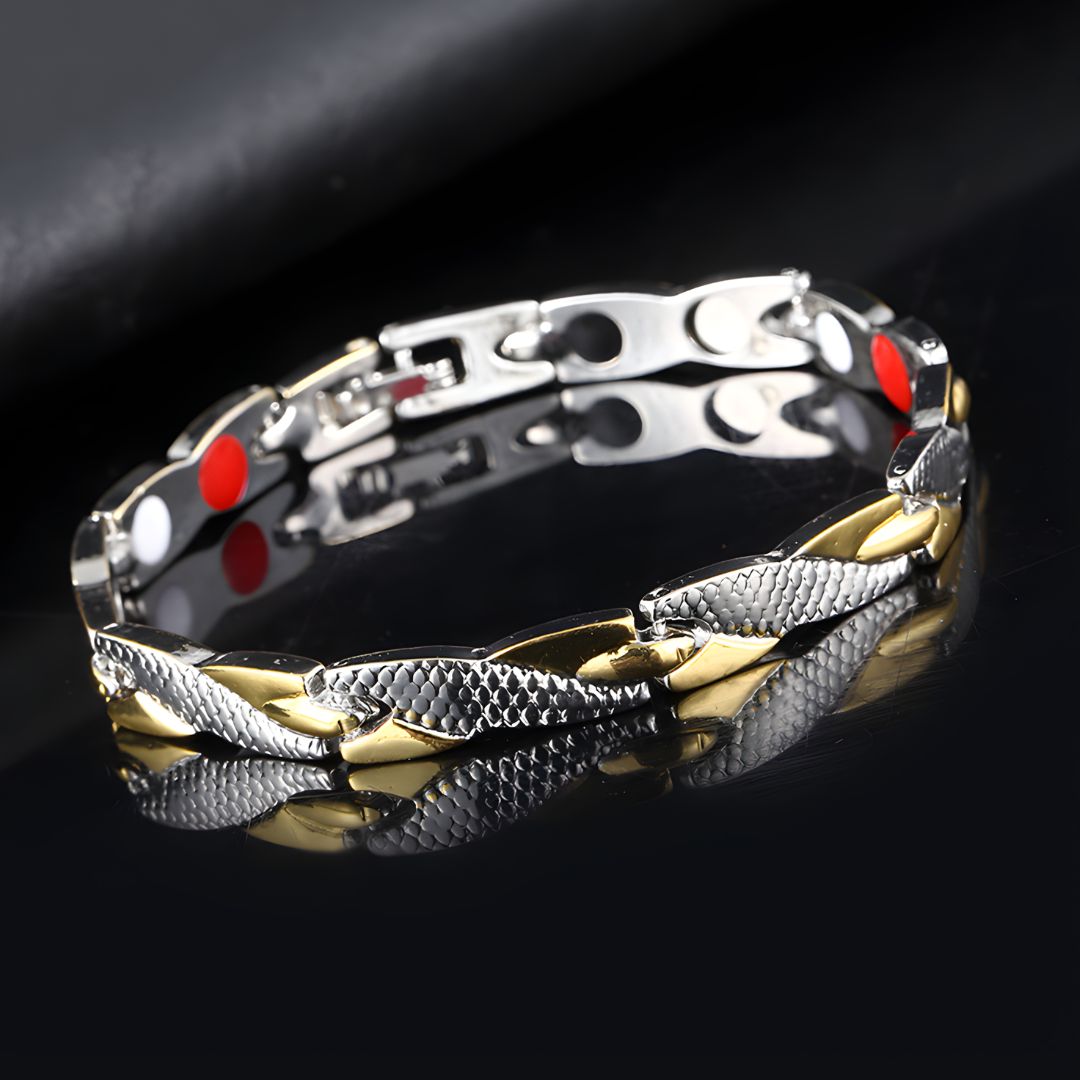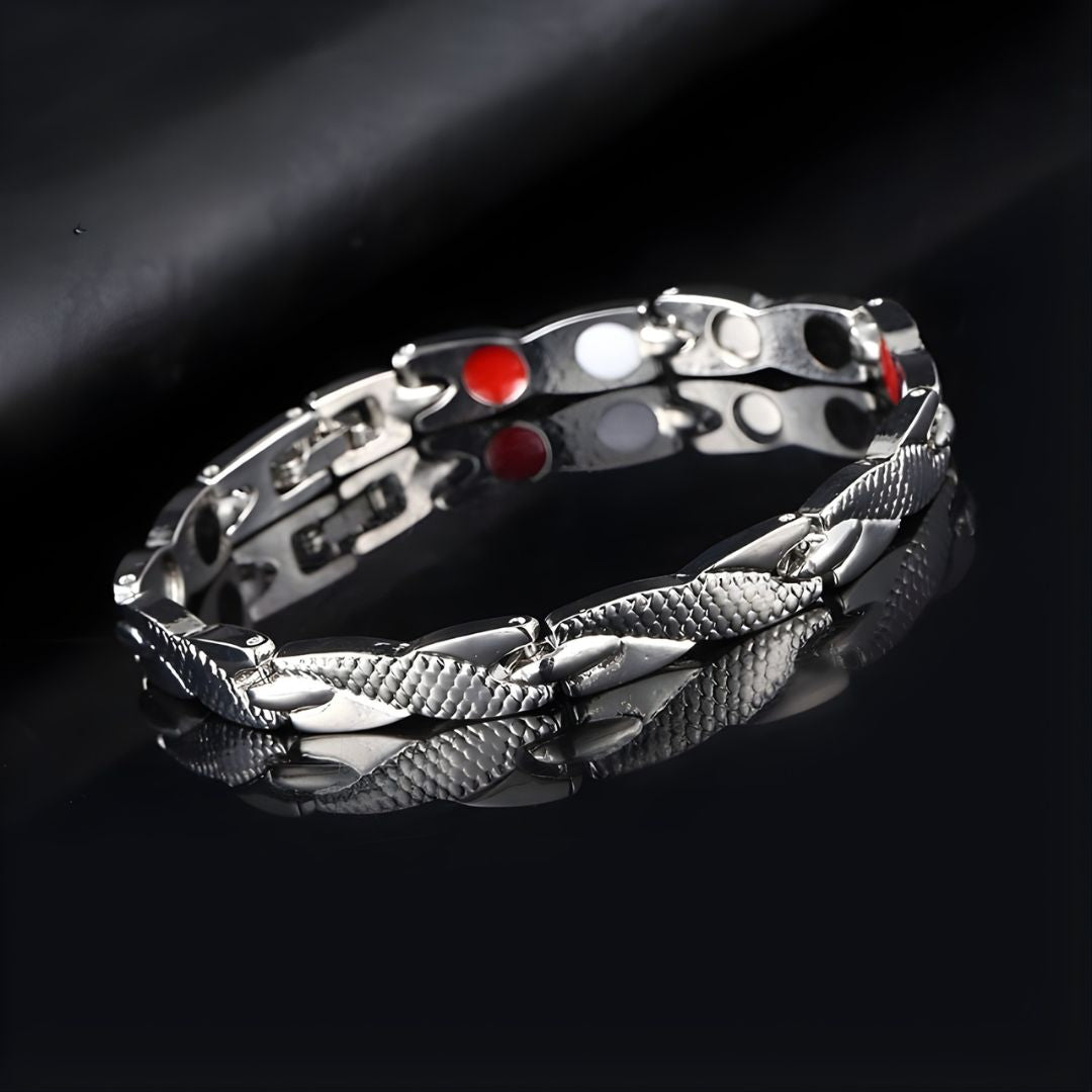 The Ardeaux Bracelet is where subtle artistry meets timeless masculinity. Every curve of its engraved dragon-scale motif captures the spirit of power — silent, contained, and undeniable. Forged from polished titanium steel, the bracelet radiates a clean, modern sheen that feels both commanding and effortlessly elegant. Its adjustable design offers tailored comfort, whether worn as a solo statement or a matching emblem of shared strength.
