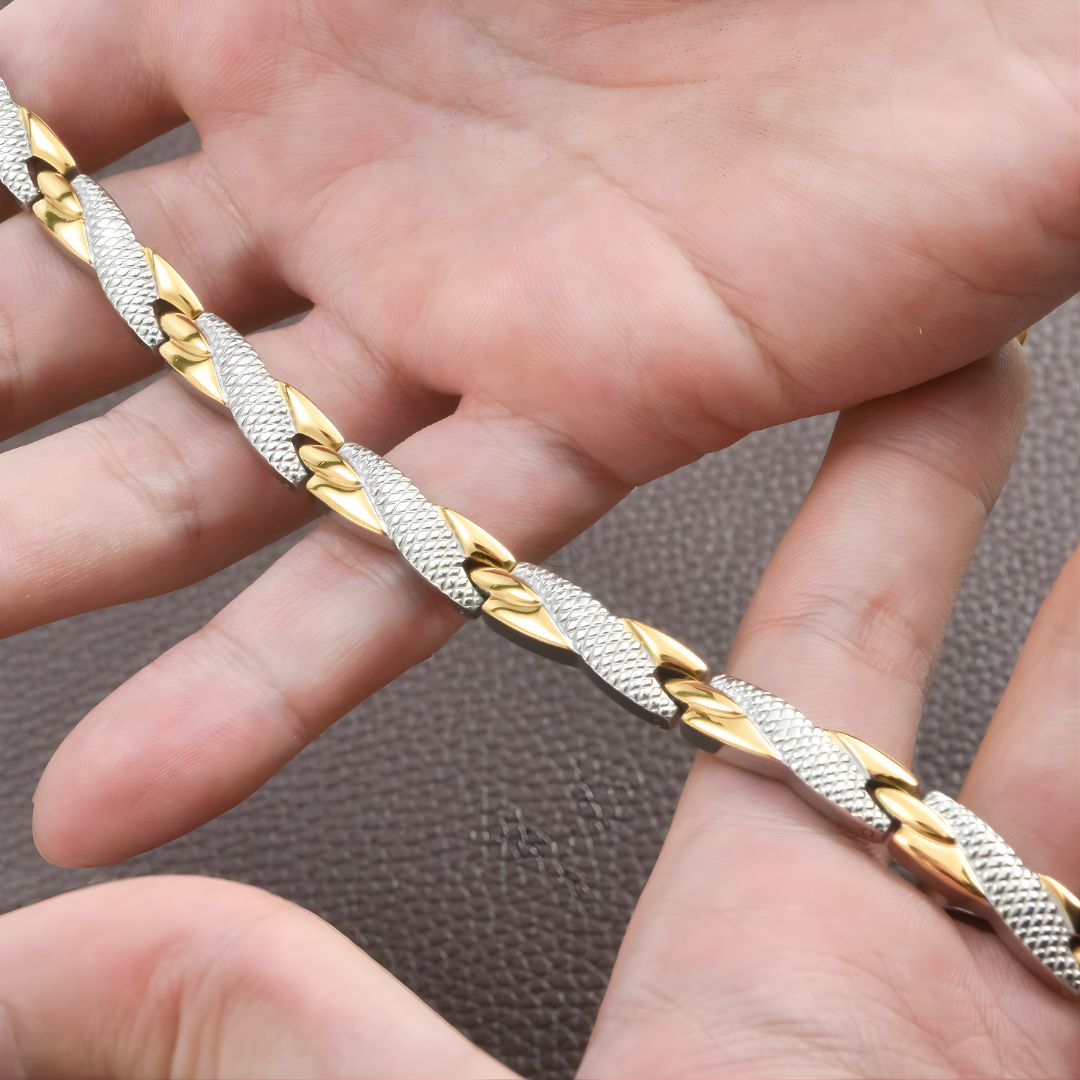 Titanium Steel Durability — Built to last with enduring luster and resistance to wear.
