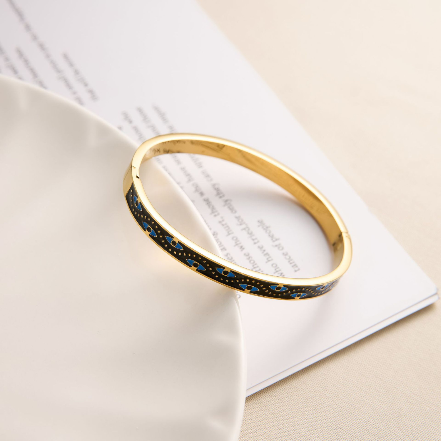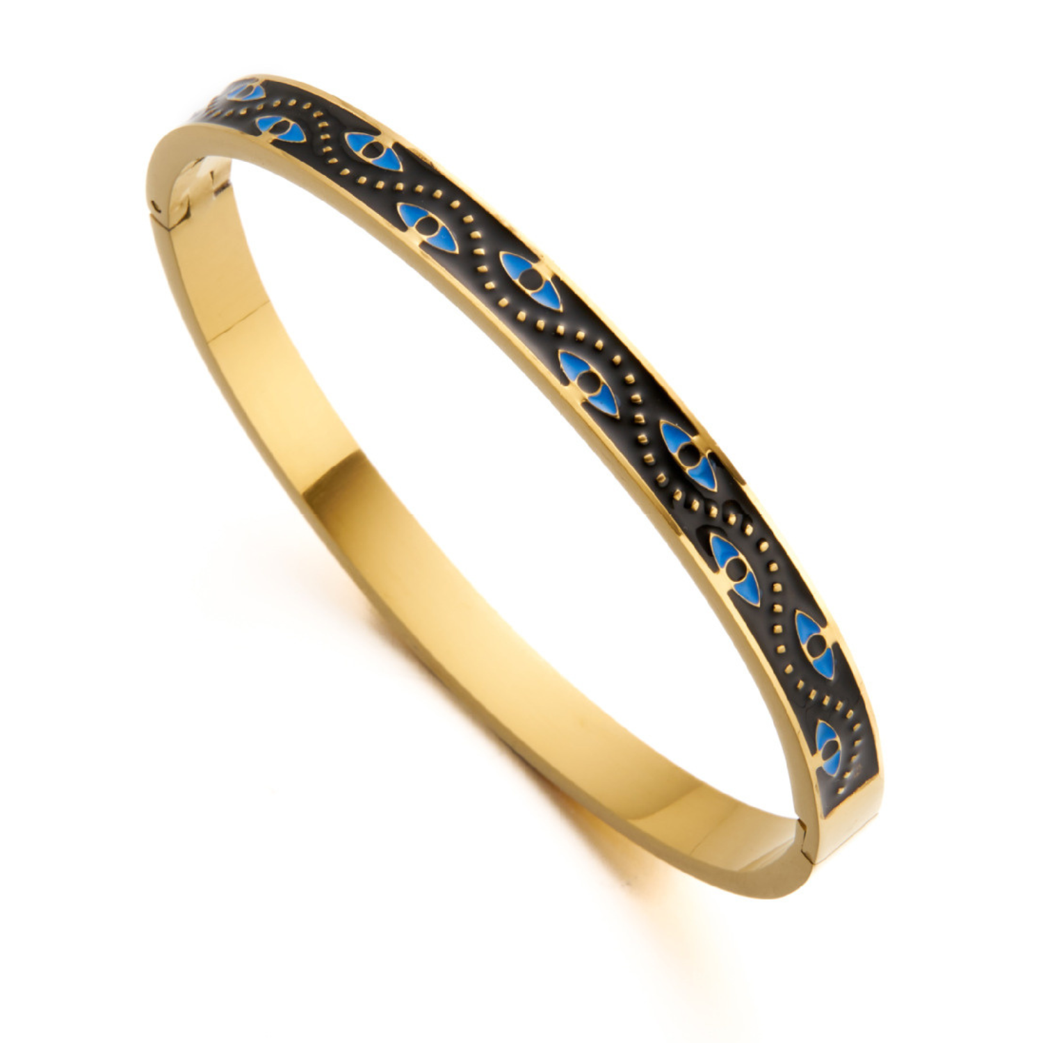 The Aurelvon Bracelet brings a bold fusion of mystique and refinement to the modern gentleman’s wardrobe. With its black-and-blue enamel inlay, polished 18K gold–tone titanium steel, and the iconic evil-eye emblem, Aurelvon bridges ancient symbolism with contemporary European elegance. Its geometric buckle silhouette feels architectural and deliberate—an understated yet unmistakable expression of identity, protection, and elevated taste. Designed for the man who values meaning as much as aesthetics, Aurelvon is a signature piece that turns intention into presence.