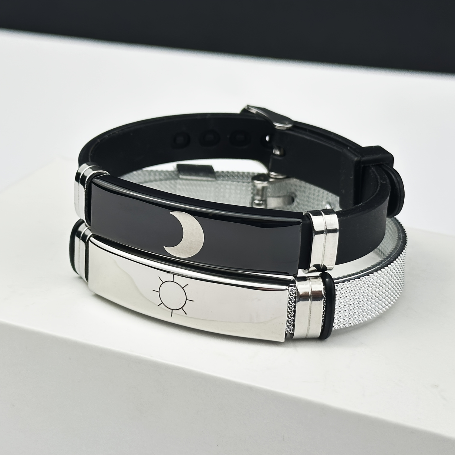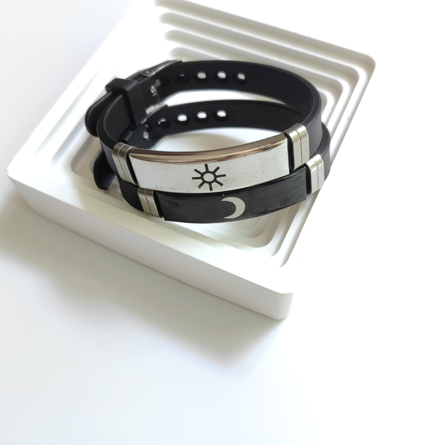 Elevate your presence with the Cavallier Bracelet, a masterful fusion of celestial symbolism and minimalist design. Crafted from durable, adjustable silicone, its sun-and-moon motif celebrates duality, balance, and the quiet power of connection. Lightweight yet striking, Cavallier is more than an accessory — it is a reminder of unity and intention in motion. Wear it solo, pair it, or gift it as a timeless emblem of shared energy.