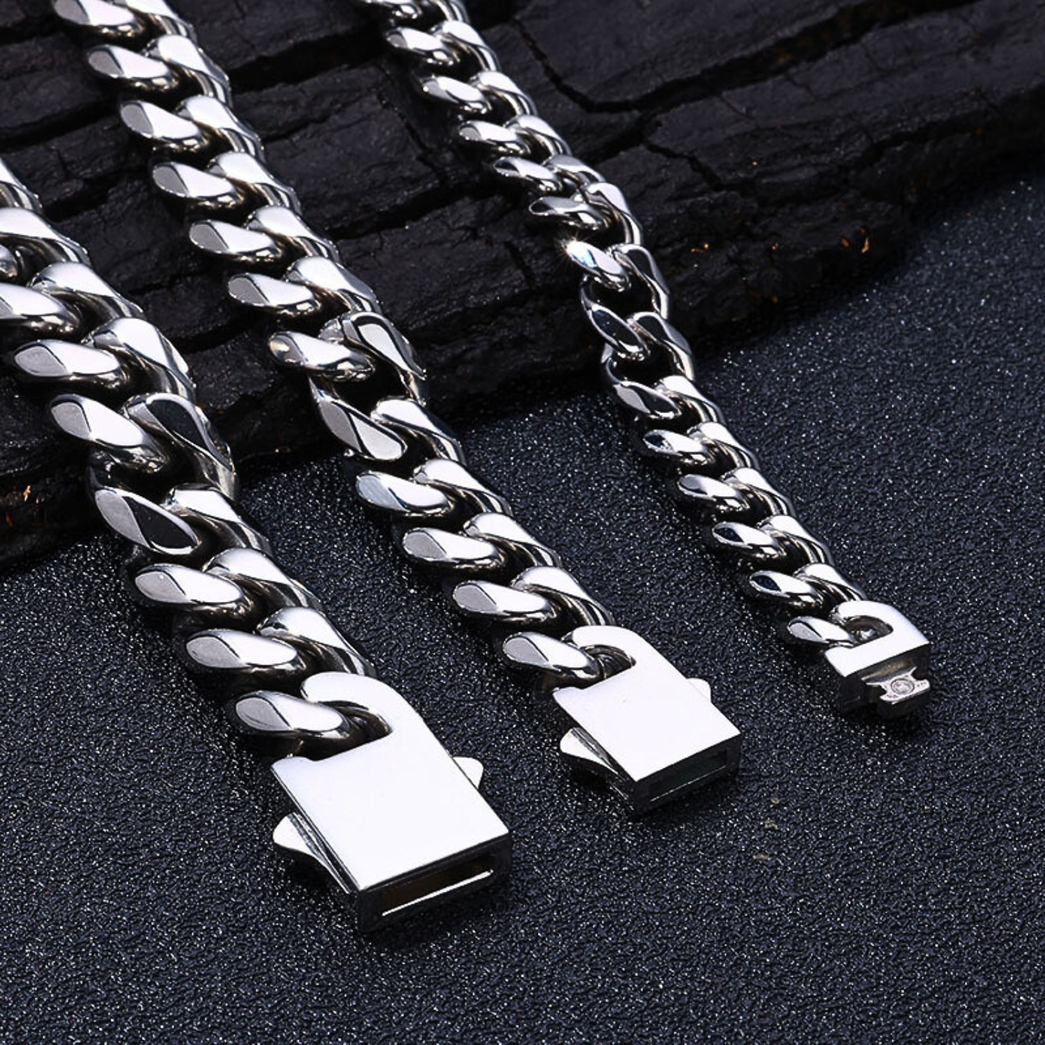 Precision Craftsmanship: Geometric six-sided links polished to perfection for a modern, refined edge.