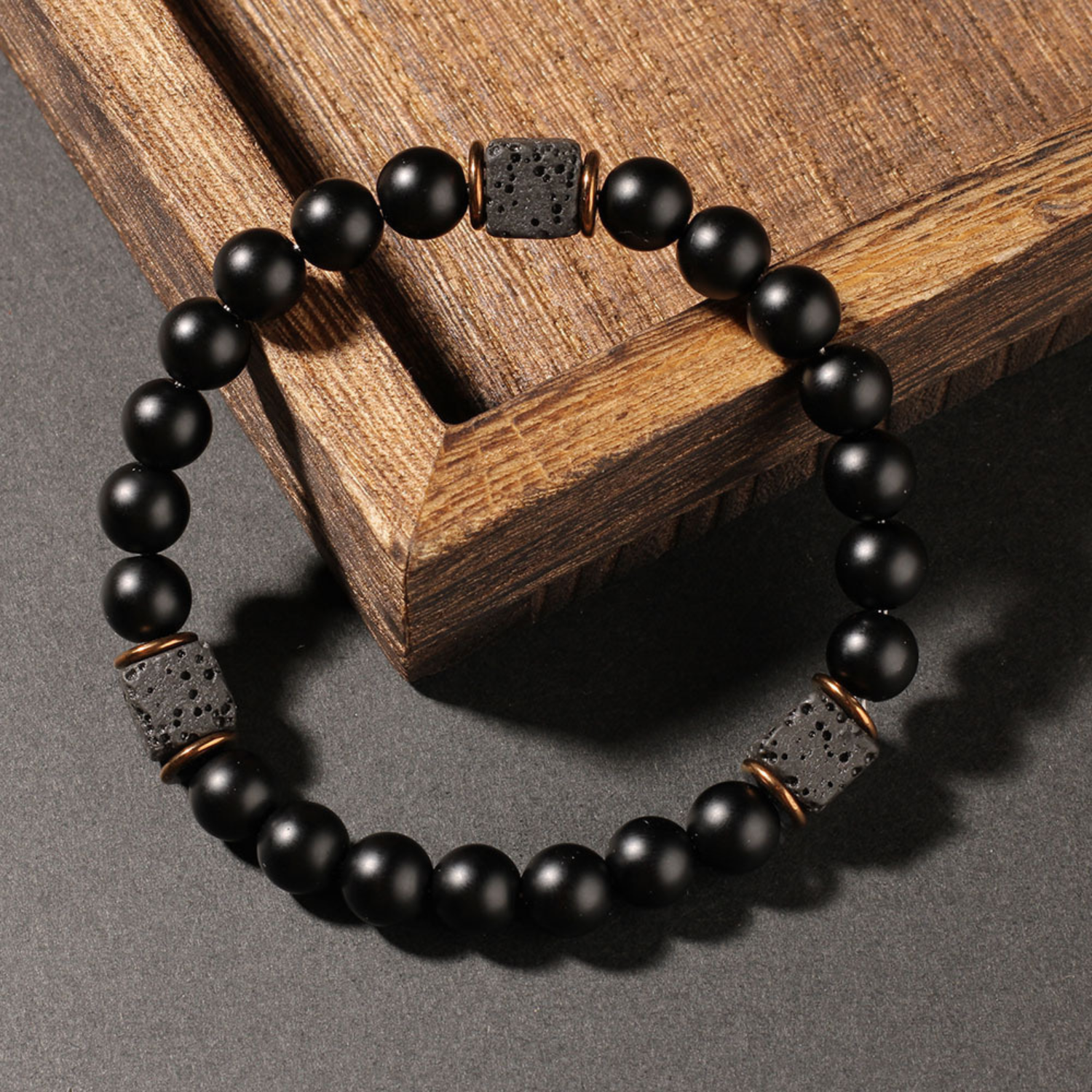 The Lustrion Bracelet is where elemental force meets contemporary elegance — square volcanic stone beads shaped with intention, balanced with titanium-steel precision, and composed into a silhouette that feels both grounded and luxuriously modern. Every edge, every texture, every matte-black facet evokes restraint, discipline, and quiet strength. Designed to move effortlessly from training to travel, from street style to tailored evenings, Lustrion is a study in confidence without noise — a signature detail for the man who expresses more by choosing less.