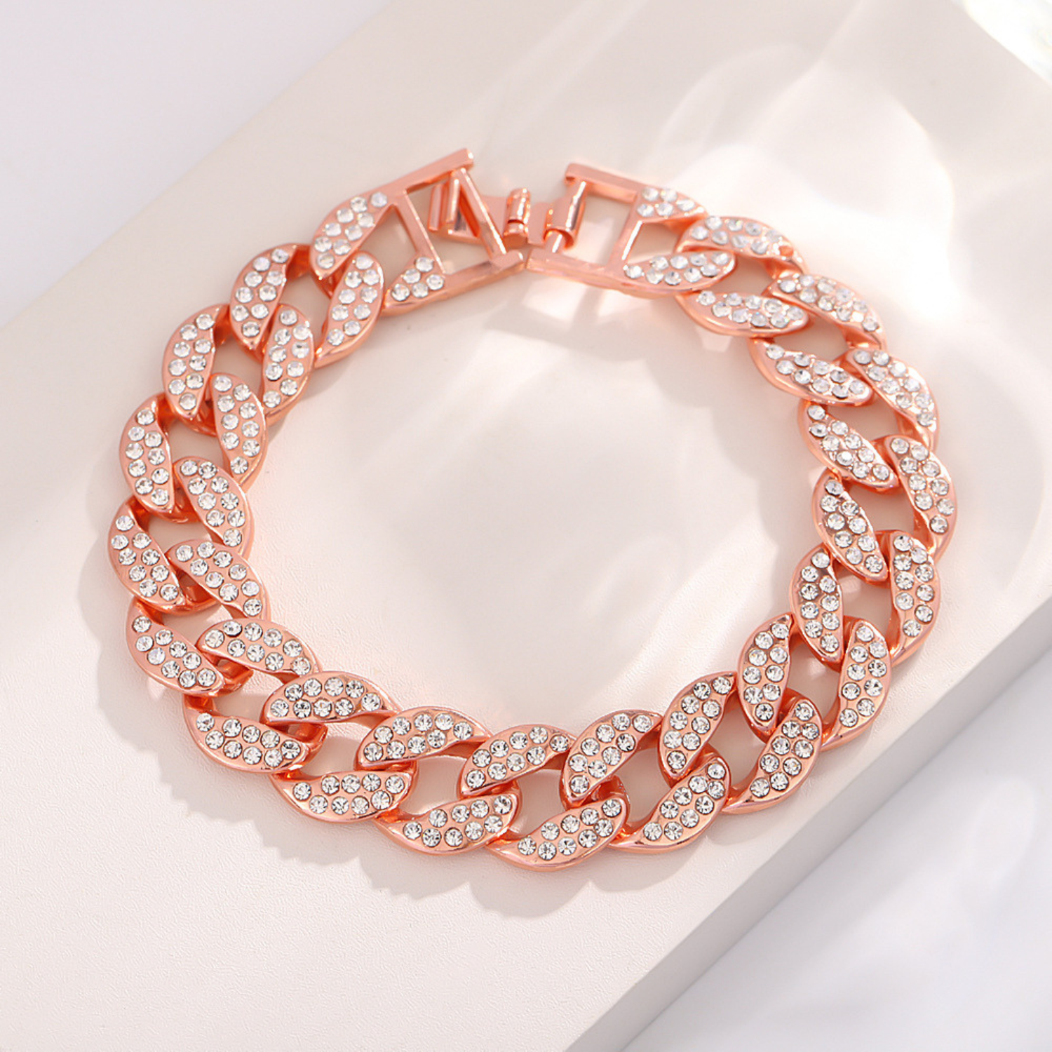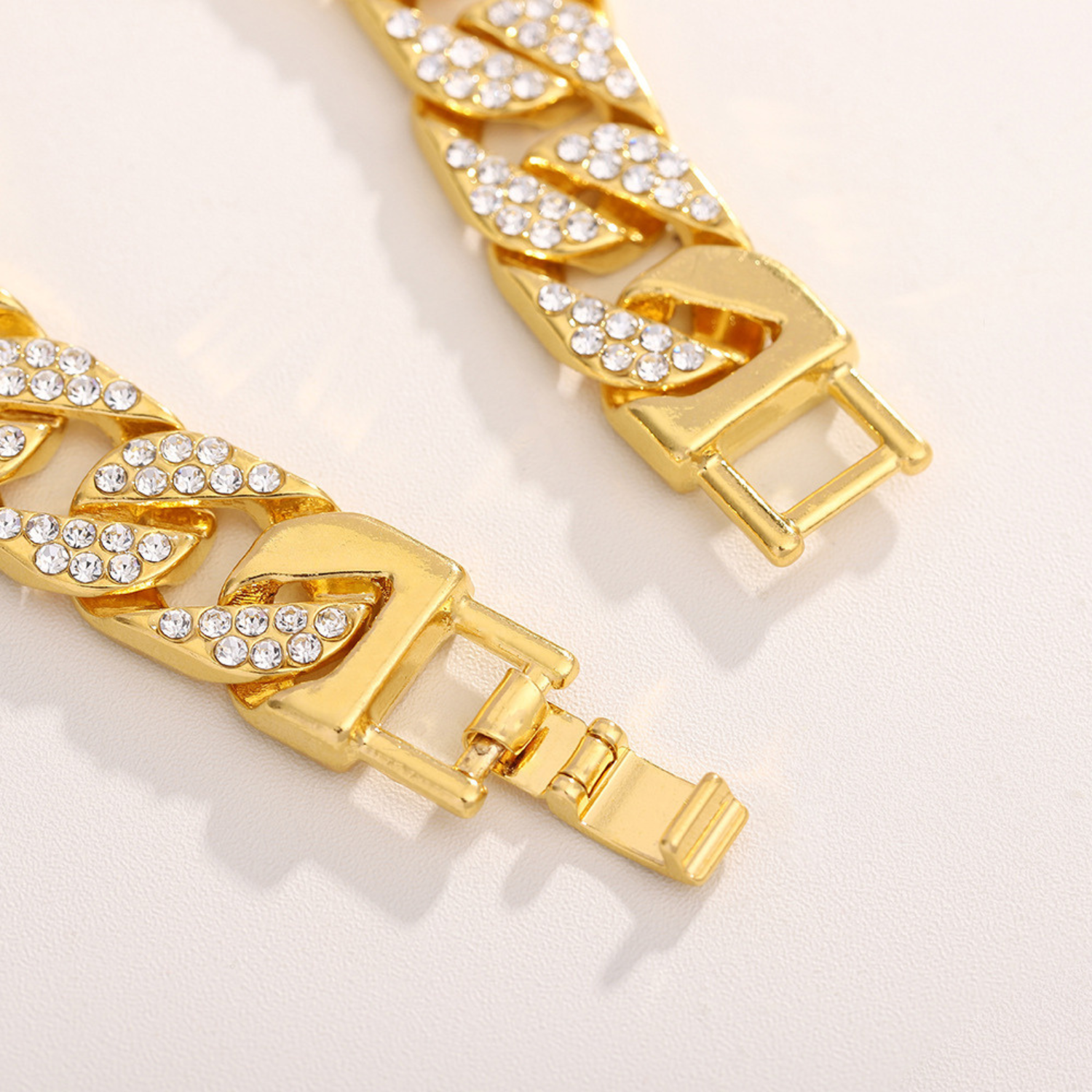 Precision-engineered interlinked chains enhanced by stone elements for a structured, contemporary silhouette.