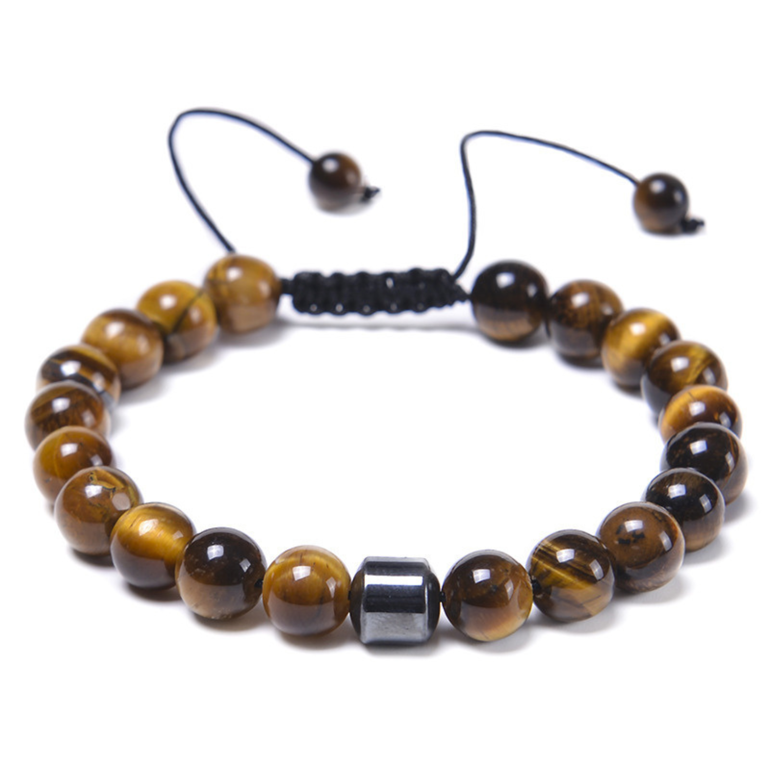 Symbolic Energy: Obsidian for protection, tiger’s eye for focus, and white turquoise for clarity — grounding your mindset daily.