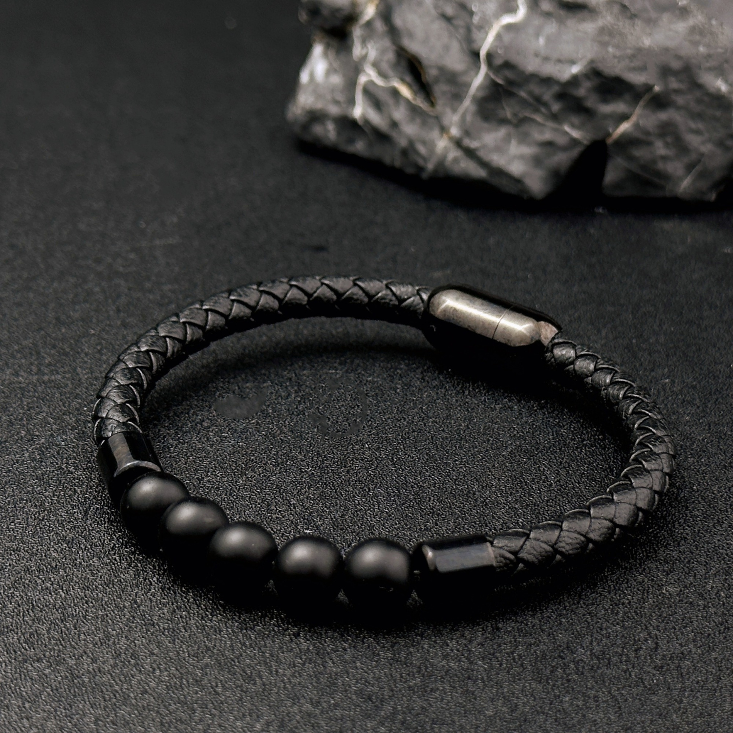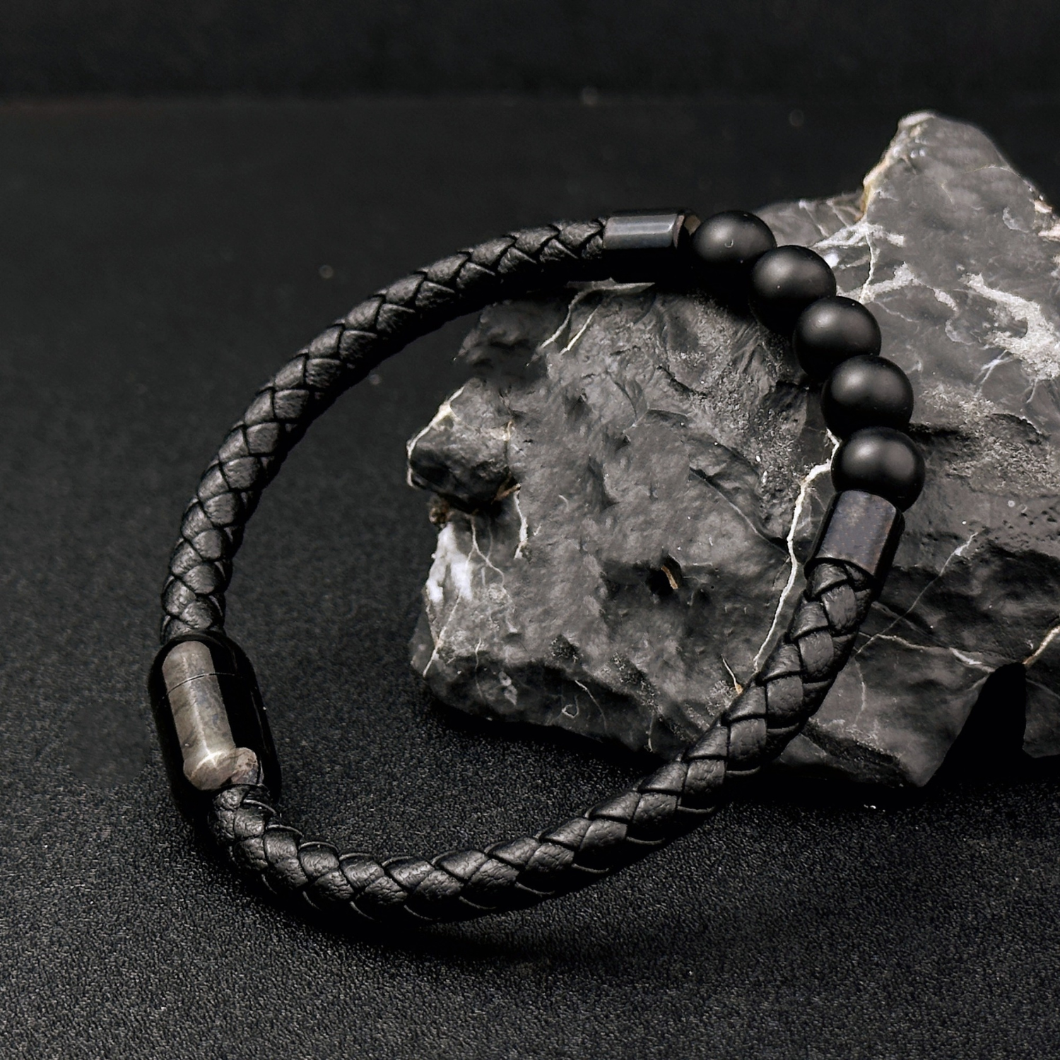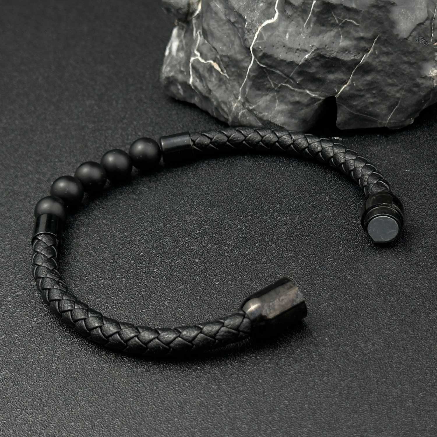The Otravia Volcanic Stone & Leather Magnetic Clasp Bracelet is crafted for the man whose presence speaks before he does. Every detail tells a story — the rugged volcanic stone beads shaped by earth and fire, the smooth braided leather band offering understated elegance, and the precision-engineered stainless steel magnetic clasp delivering a clean, modern finish. Together, they create a bracelet that feels grounded, masculine, and effortlessly elevated.