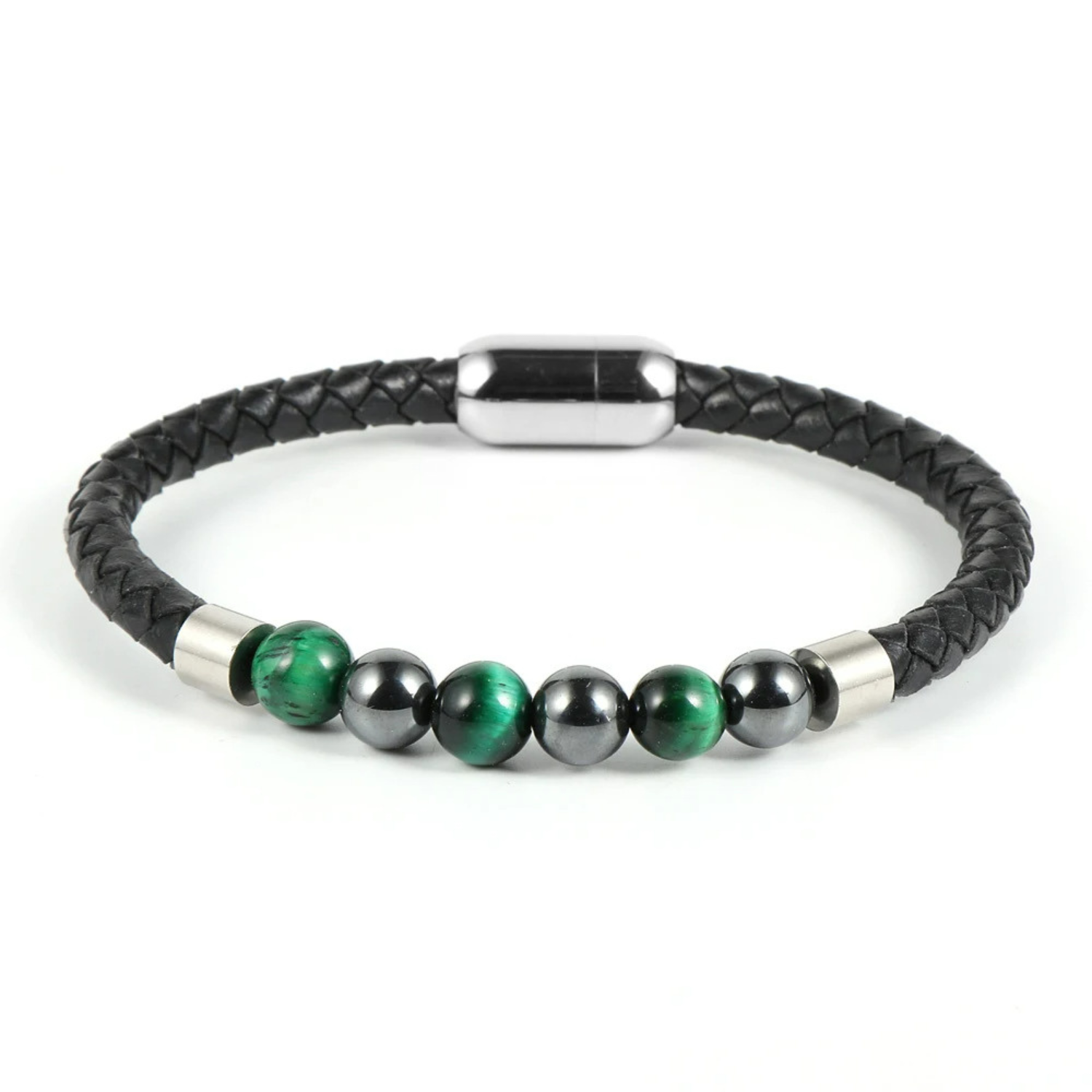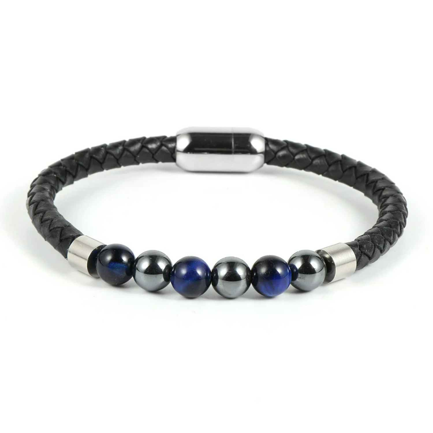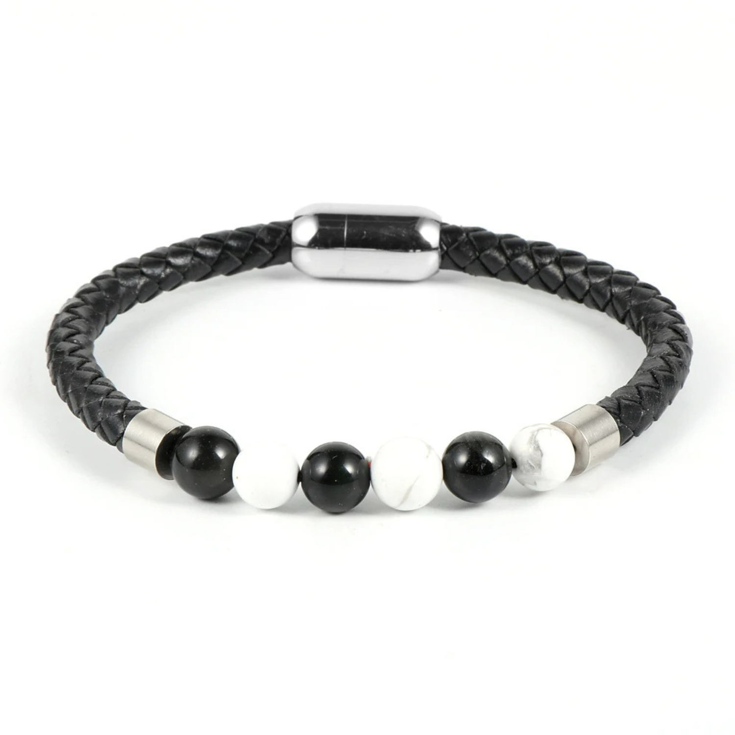 The Otravia Volcanic Stone & Leather Magnetic Clasp Bracelet is crafted for the man whose presence speaks before he does. Every detail tells a story — the rugged volcanic stone beads shaped by earth and fire, the smooth braided leather band offering understated elegance, and the precision-engineered stainless steel magnetic clasp delivering a clean, modern finish. Together, they create a bracelet that feels grounded, masculine, and effortlessly elevated.