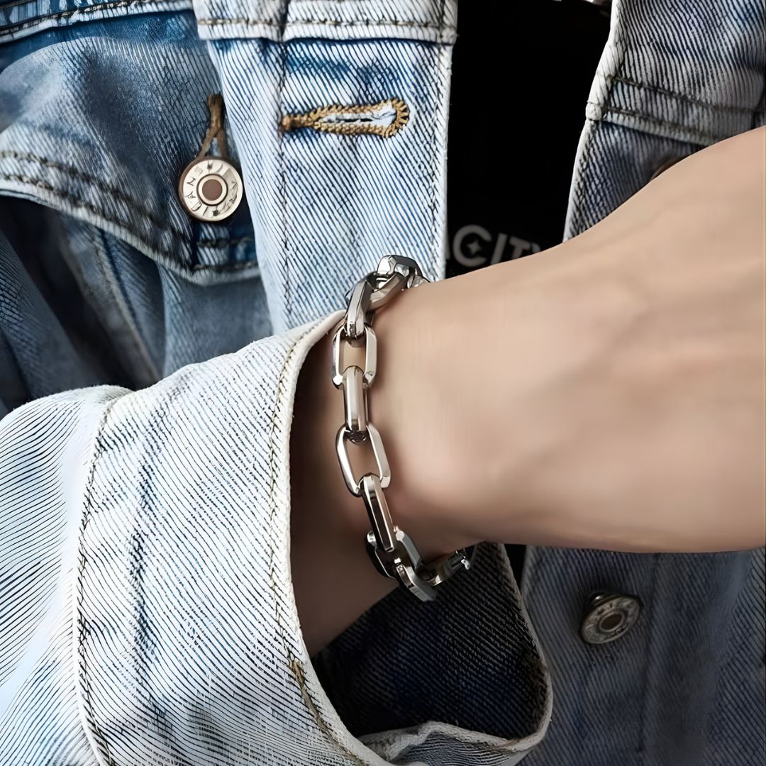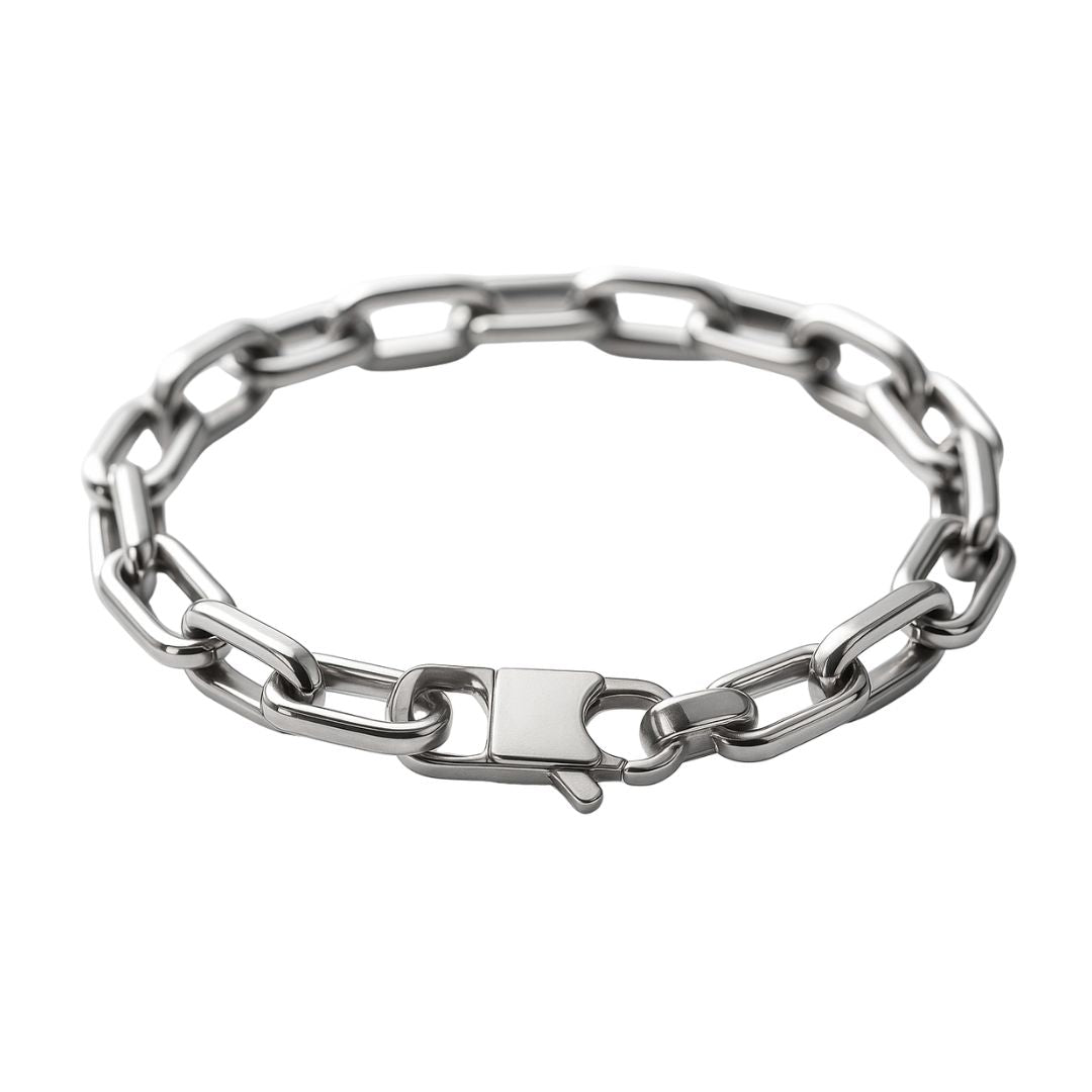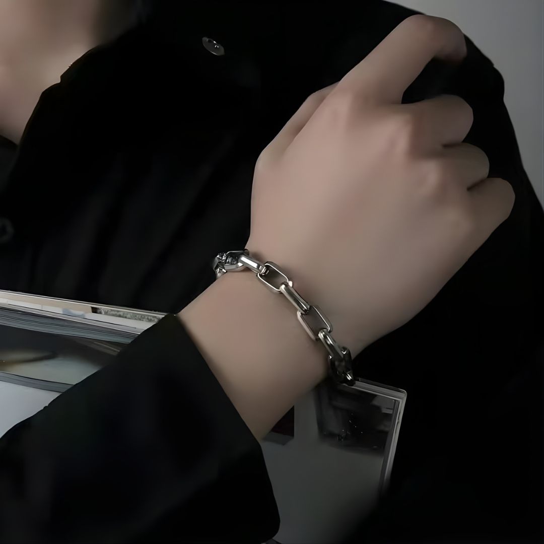 The Duvalen Bracelet is where architecture meets artistry. Each square-edged paperclip link is sculpted from premium titanium steel, merging sharp precision with effortless balance. Its minimalist geometry catches light in subtle intervals, echoing the rhythm of a man in control — deliberate, composed, and driven by excellence. Worn solo, it projects discipline. Layered, it signals distinction.