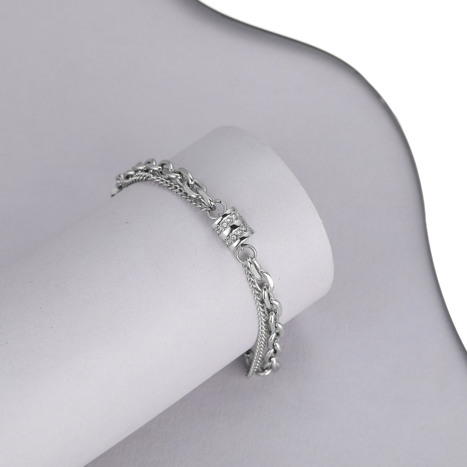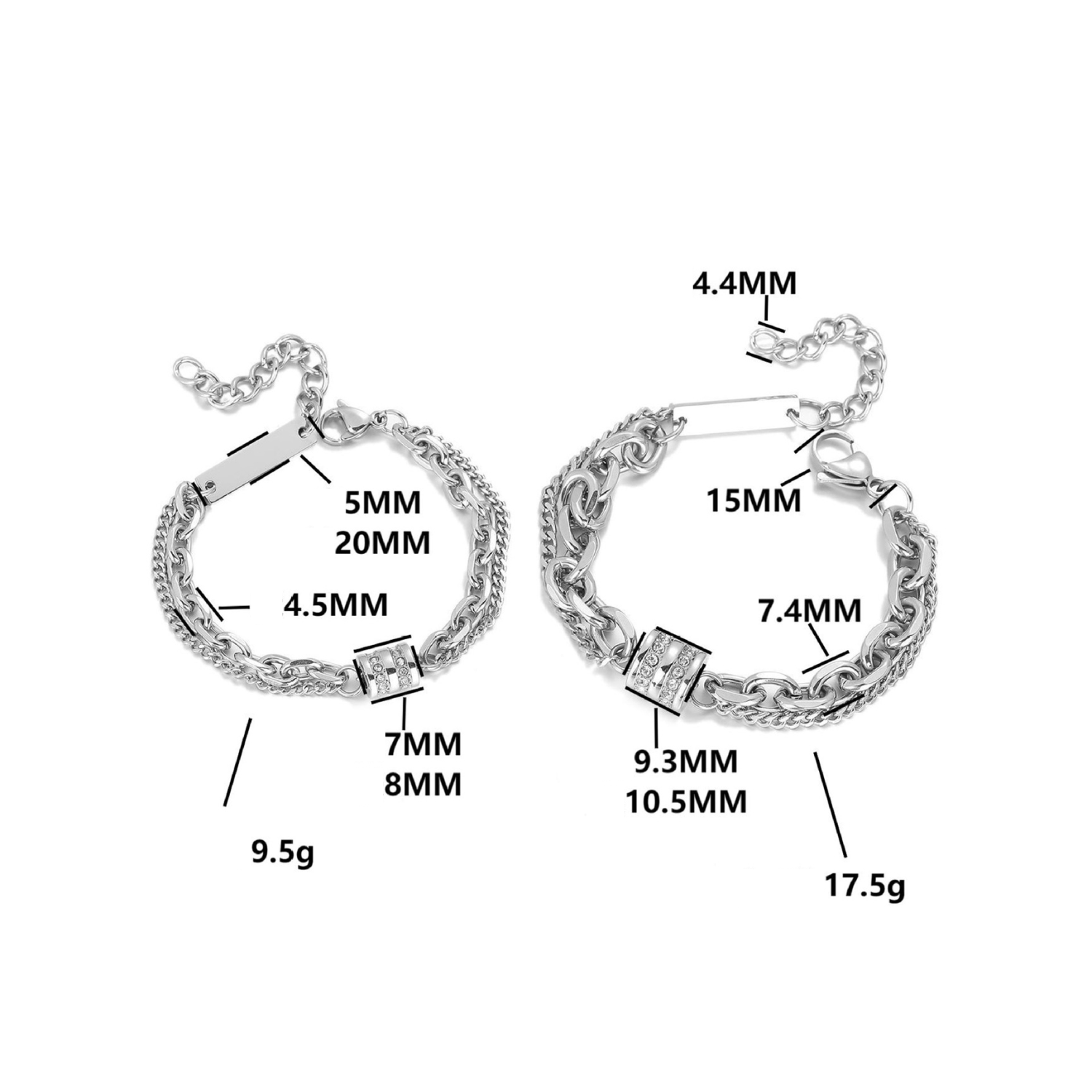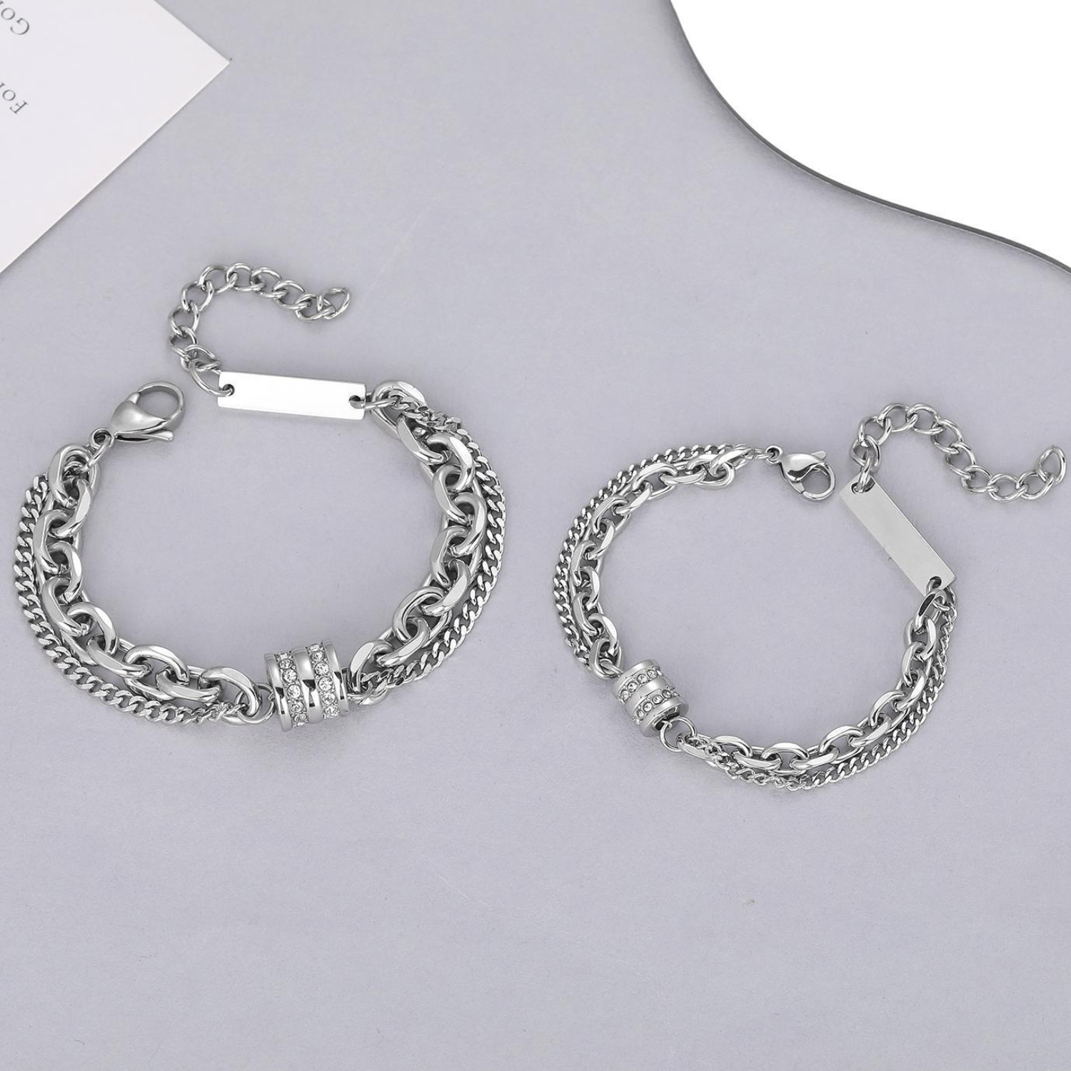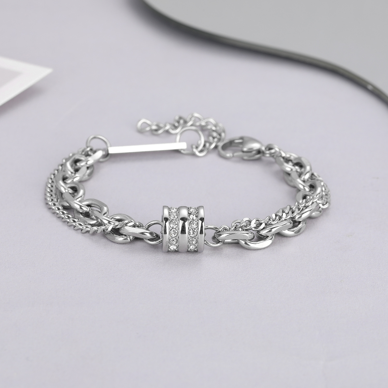 Crafted for the man who values intention in every detail, Valtoré carries a quiet power in its double-layer transporter-link design. Cool titanium steel catches soft light with understated precision, while its paired structure symbolizes balance, unity, and the journeys you choose to share. Sleek, polished, and architecturally modern — it’s a bracelet that elevates not just your outfit, but the narrative you carry into every room.