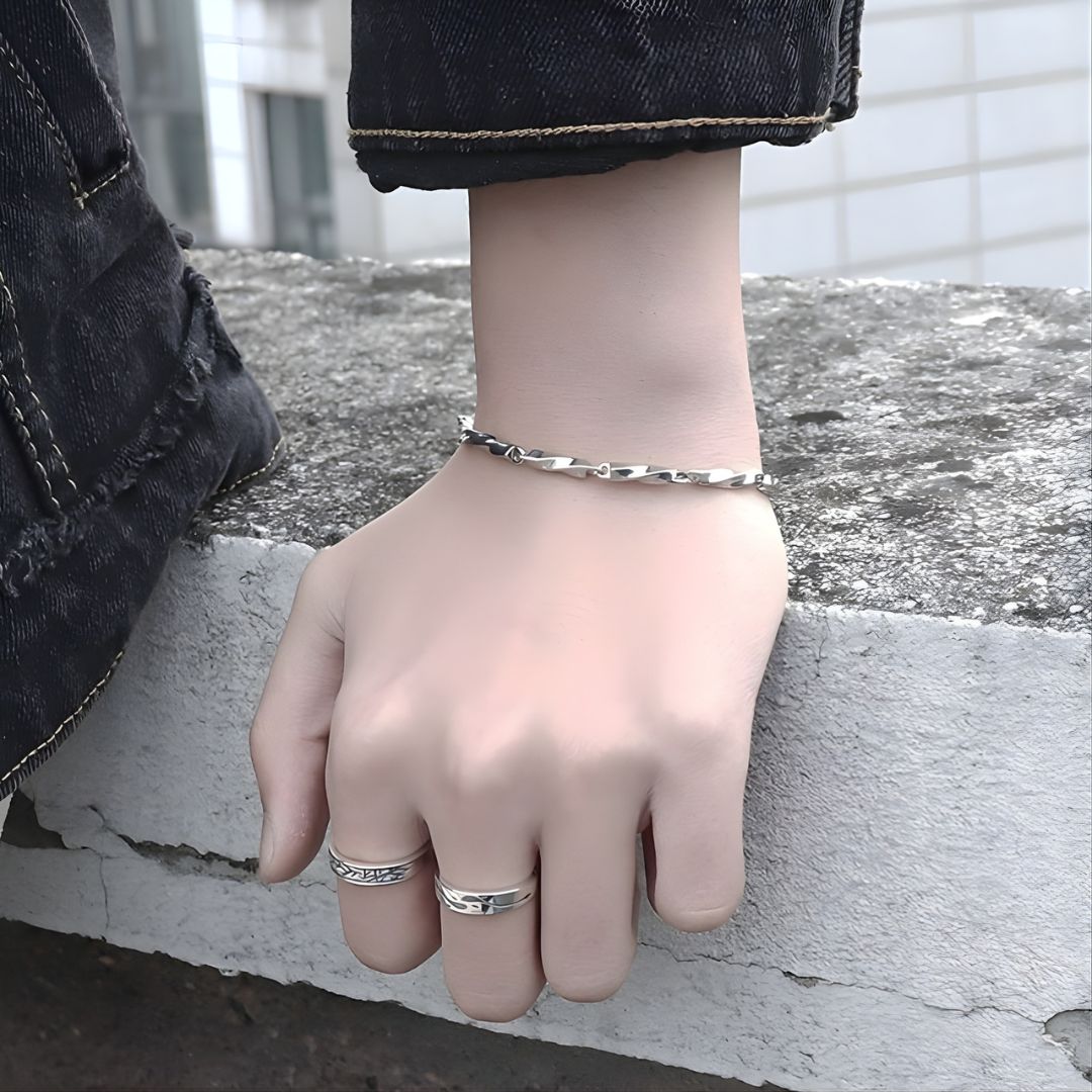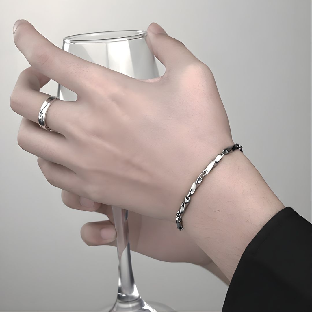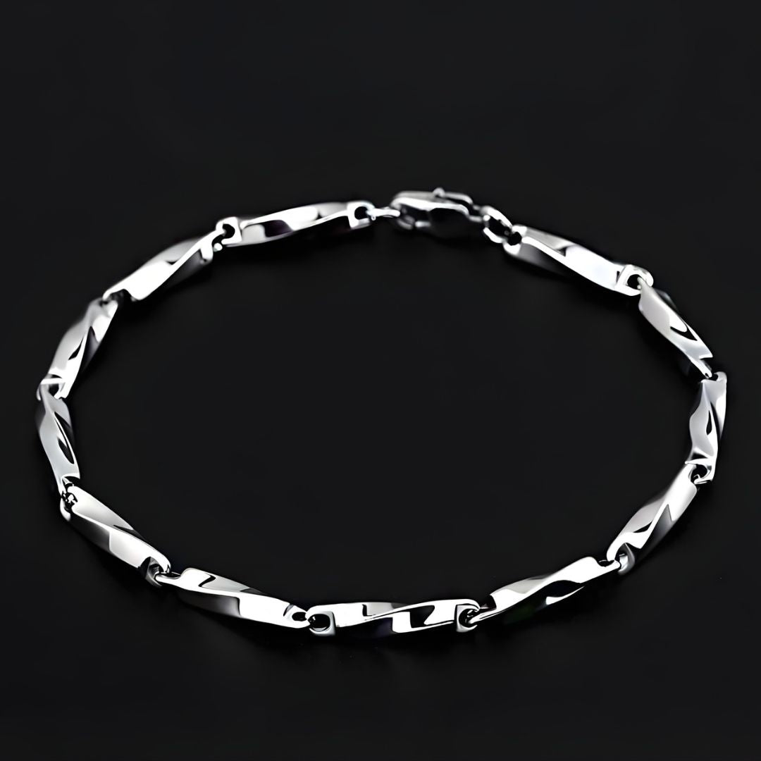 Architectural Craftsmanship — Möbius-inspired links engineered with geometric precision for a sculptural, fluid silhouette.